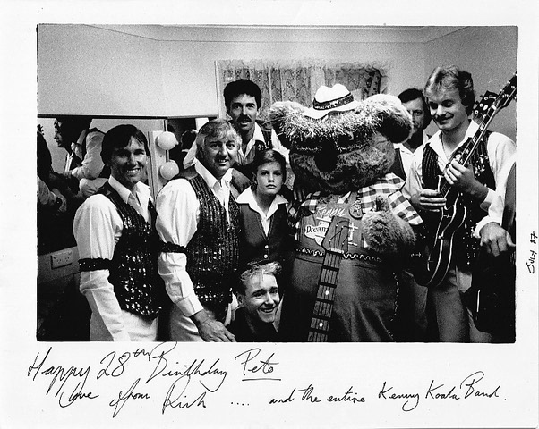 DINNERTIME AT RAK. CLOCKWISE: JULIAN SPINK (SOUND ENGINEER - AUSTRALIA), MAZ, GREG O'CONNOR, PETER FARNAN, DALE RYDER, RICHARD PLEASANCE, ALEX SADKIN (PRODUCER), WILL GOSLING (SOUND ENGINEER), ROY SPONG (TAPE OPERATOR)
